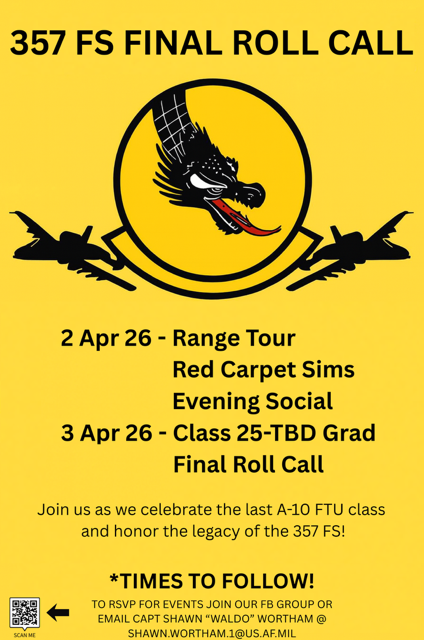 The Wild Weasel Reunion will be 14-17 May, 2026, at Fort Walton Beach. Annex A is coming soon.